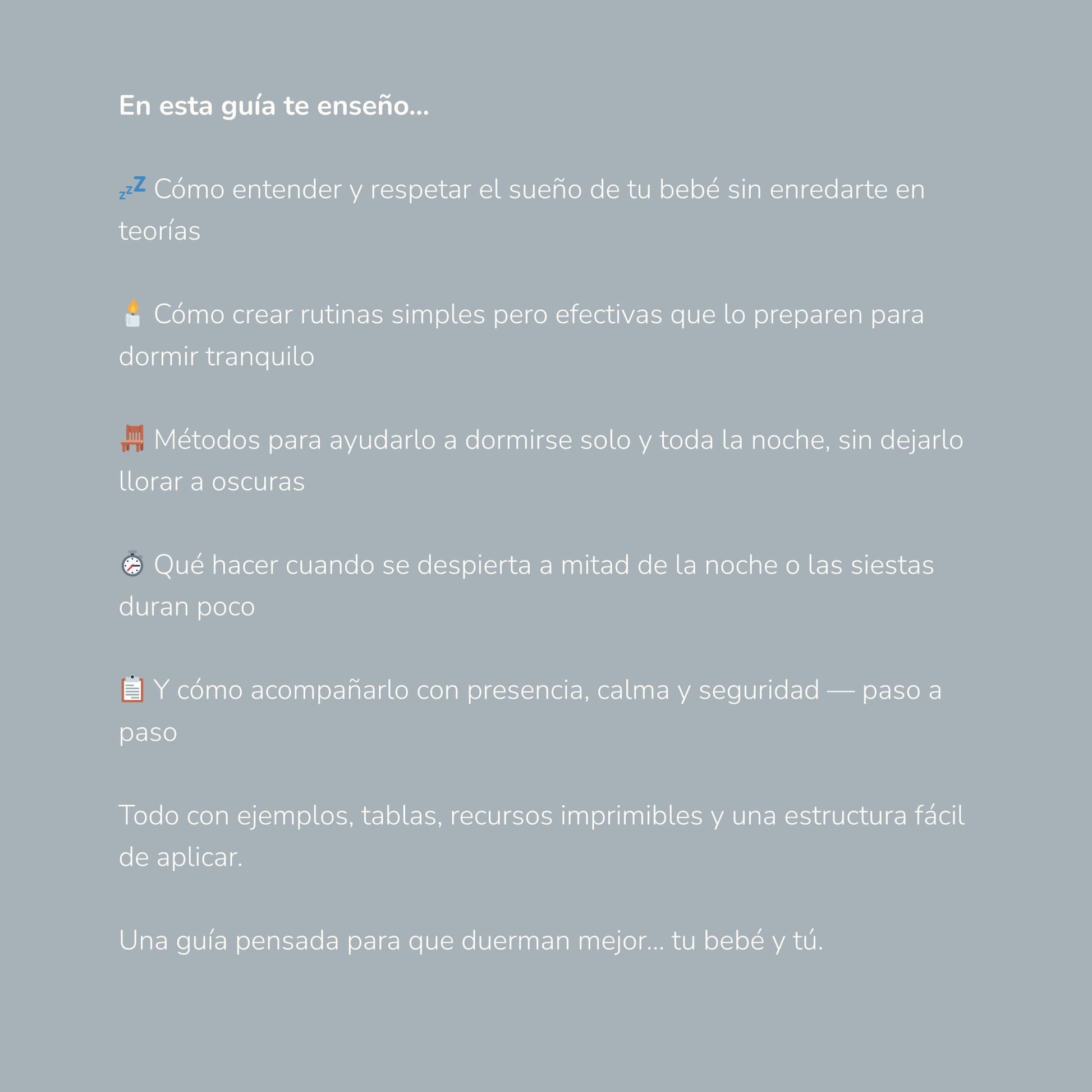 Sí, 100%. Está diseñado con un enfoque amoroso y gradual, sin dejar llorar al bebé sin consuelo. Promueve el apego seguro y el descanso saludable.